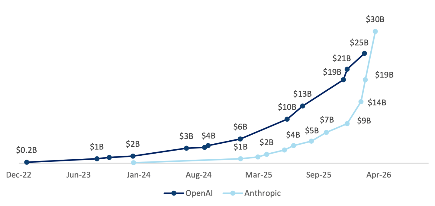 • Anthropic revenue surpasses OpenAI.