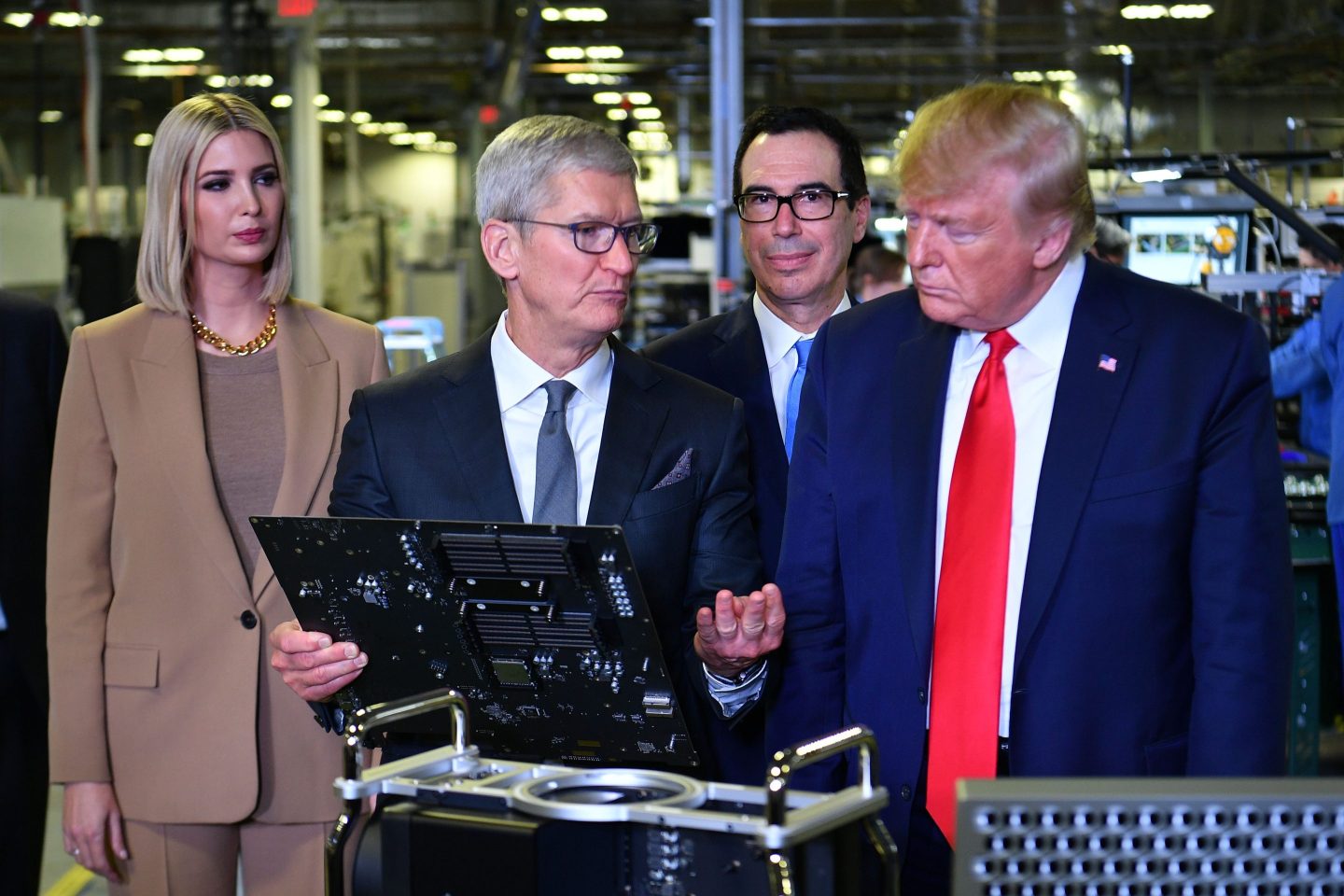 Tim Cook gives President Trump a tour of a factory during the first Trump term.